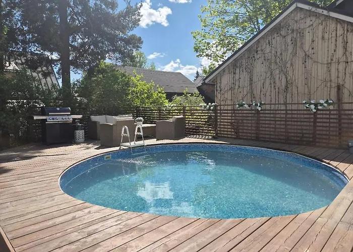 Disfruta de tus vacaciones en Helsinki en el Villa Mosahiisi Charming Poolside Getaway Helsinki. Ideal para quienes buscan una experiencia auténtica, está situado a unos 10 minutos en coche del Mundo Invernal Unique Lapland Helsinki y a 2 km del Pyhän Laurin kirkko.